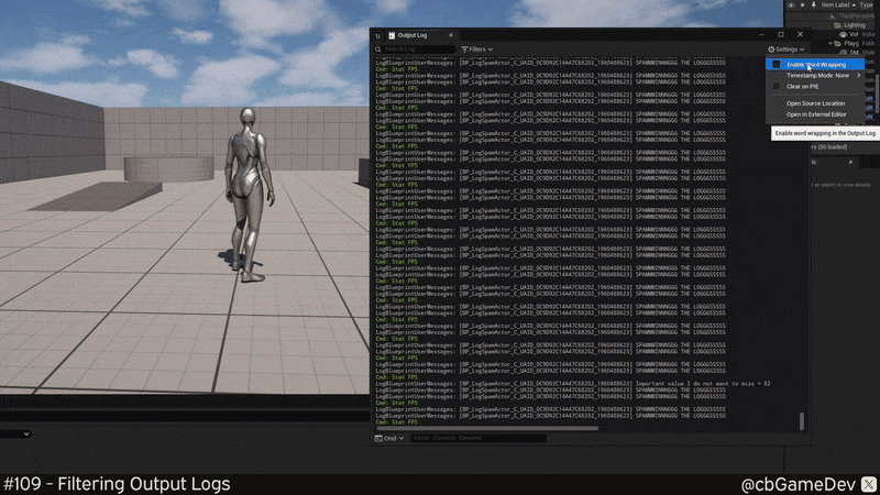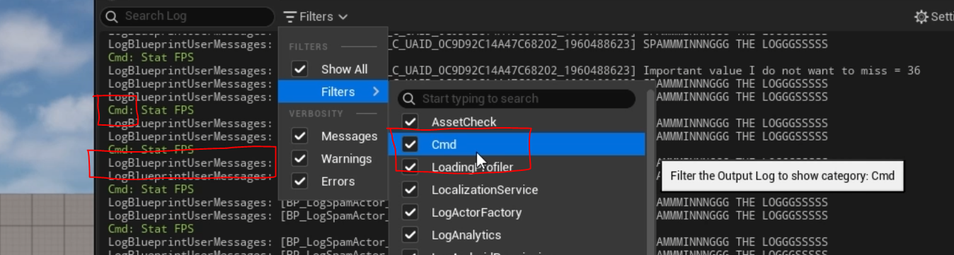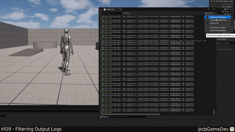 Did you know you can filter the Output Log in Unreal to make it much easier to read and find what you’re looking for?